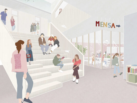 Wir freuen uns zum Jahresende über eine Anerkennung beim Wettbewerb Neubau Sporthalle Rottweil. Auszug aus dem Juryprotokoll: „Der Entwurf setzt mit der Sporthalle einen neuen Gebäudeflügel, der die Ausrichtung der Realschule aufnimmt und einen großen gemeinsamen Hof für die Schulgebäude öffnet. Es entsteht ein sinnfälliges Ensemble, das die zentrale Außensportfläche und die sie umgebenden Schulgebäude in einen neuen räumlichen Zusammenhang setzt. Damit werden die Aufenthaltsqualitäten des Schulhofs für das Albertus-Magnus-Gymnasium signifikant verbessert. Der grüne Vorplatz vor der neuen Sporthalle spendet den notwendigen Schatten durch großkörnige Bäume und bildet das Entree für den zentralen Eingang in die Sporthalle….“